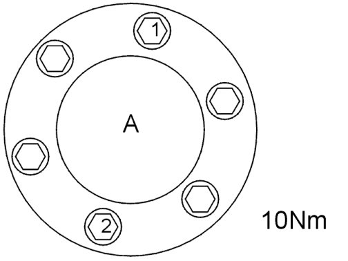 - Tighten screw (1) and (2) in numerical order to 10 Nm as per the illustration (A).