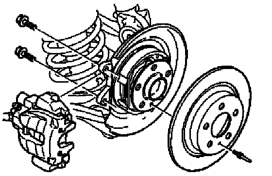 Remove the mounting screws for the brake caliper. Hang the caliper from the spring. Use a wire so as not to damage the brake pipe.