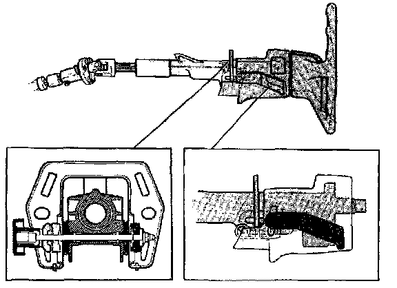The steering column (steering shaft, steering wheel lock and mechanism for steering wheel rake and raising/lowering) is an integrated unit protected by an outer pipe.