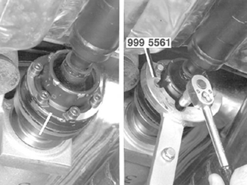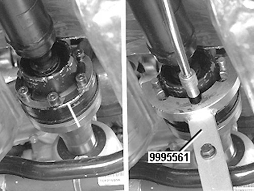 Remove the propeller shaft screws. Use counterhold 999 5743