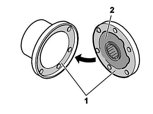 - Apply a thin layer of liquid gasket to the mating surfaces (1) on both the joint and the rear cover.