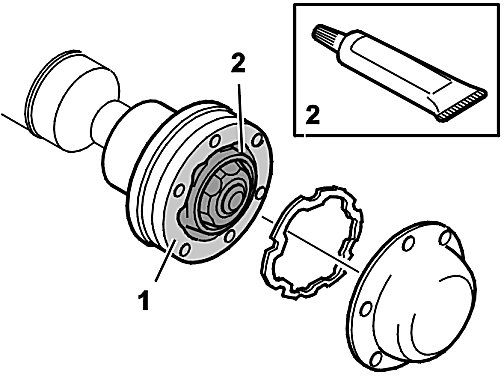 - Squeeze the remaining grease into the propeller joint (2). The entire contents of the tube must be used.