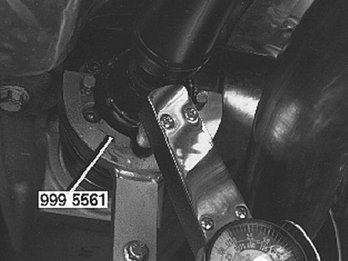 - First tighten the screws crosswise. Tighten to 8 Nm. Then re-tighten crosswise. Tighten to 30 Nm. Use counterhold 999 5743