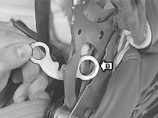 - Use a screwdriver to lift apart the mounting at C in order to angle out segment B.