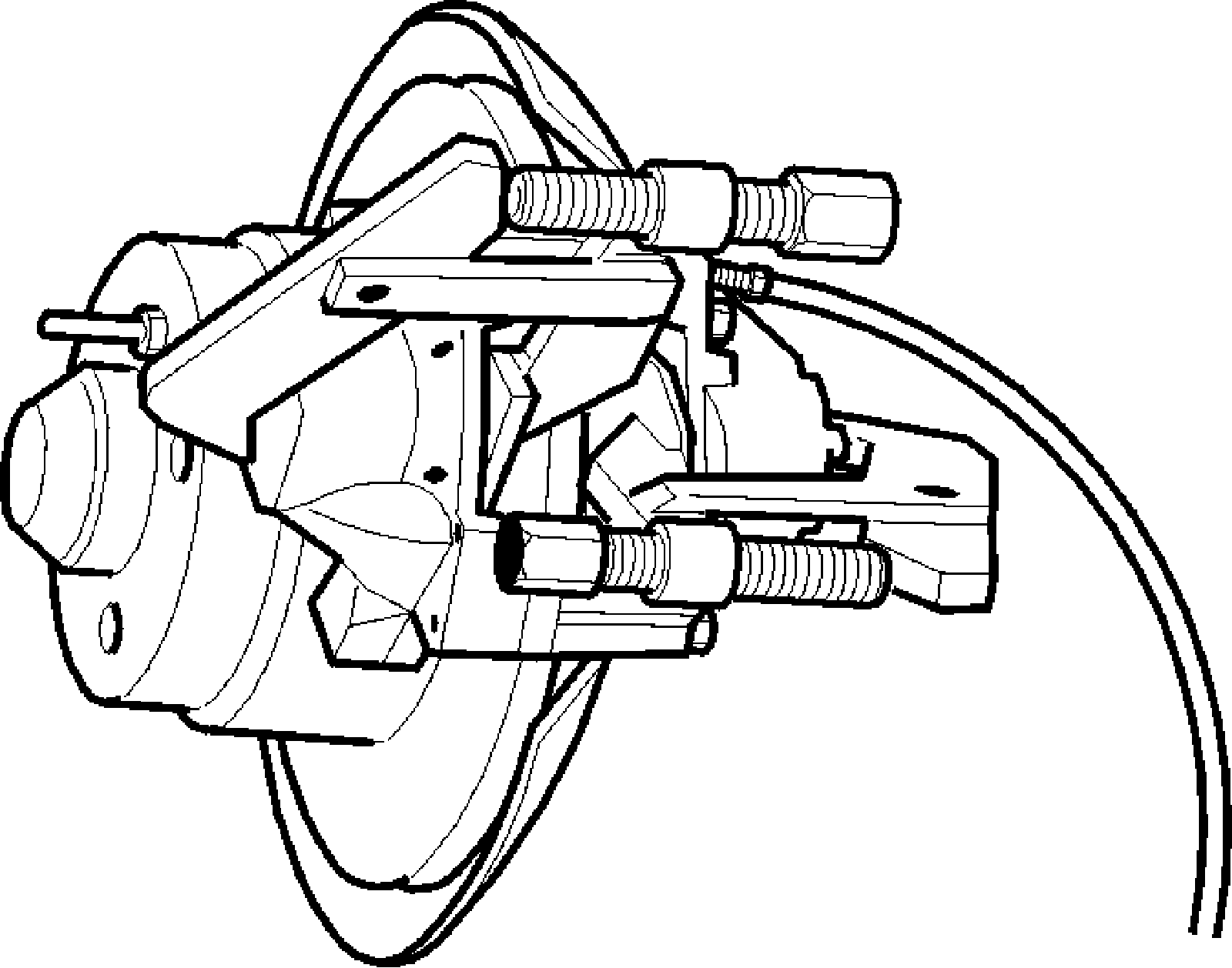 - Push brake caliper pistons right down into caliper, using tools 999 2809 (x 2). Leave tools on calipers.