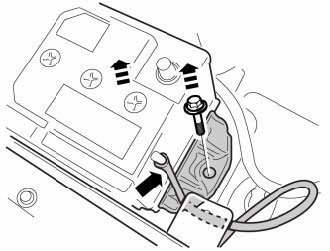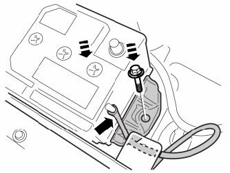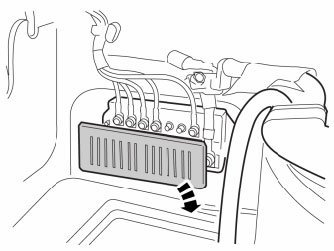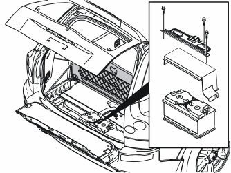 - Remove the two screws and the nut from the holder for the battery cover and lift out.