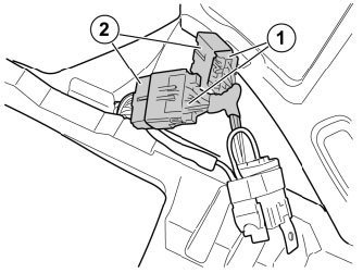 - Connect the adapter cable's gray male and female connector (1) to the corresponding connectors (2) for the towbar wiring.