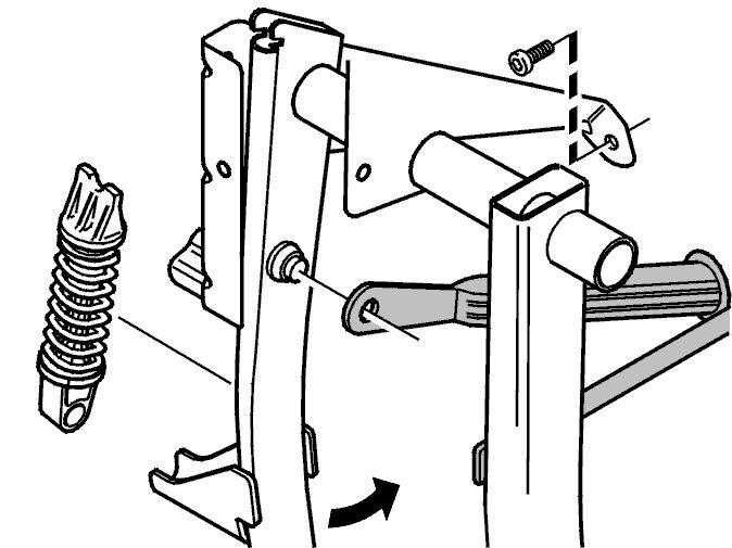 Install the brake pedal on the screw. Push the bracket slightly to one side. Fold up the brake pedal in the bracket.