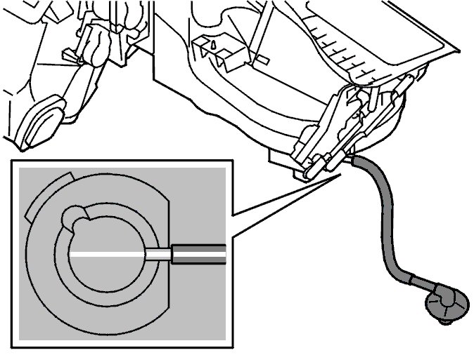 When replacing the drain hose on older cars a new hatch is supplied for the filter housing. The hatch drainage outlet is plugged.