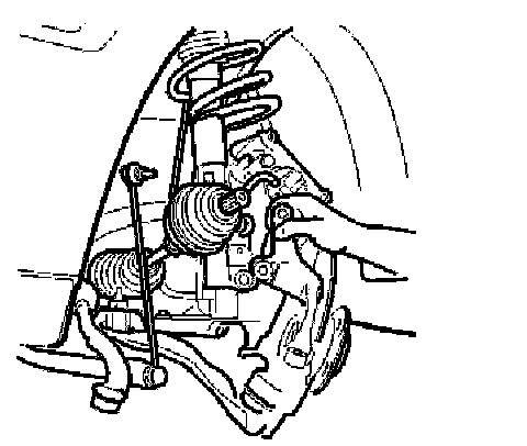 - Loosely install both the screws retaining the spring strut in the wheel spindle. Use new screws and nuts