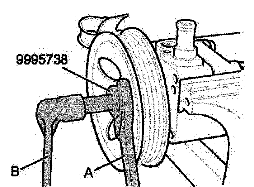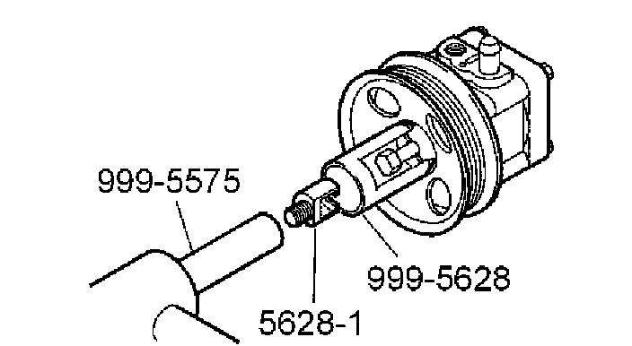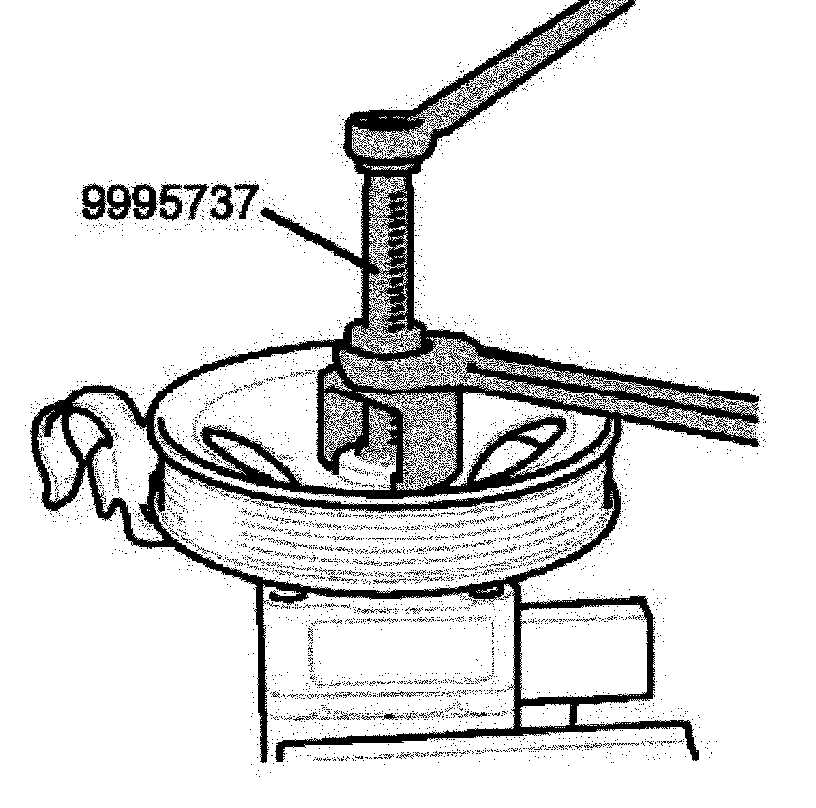 - Hook tool 5628-1 onto the screw for the pump shaft.