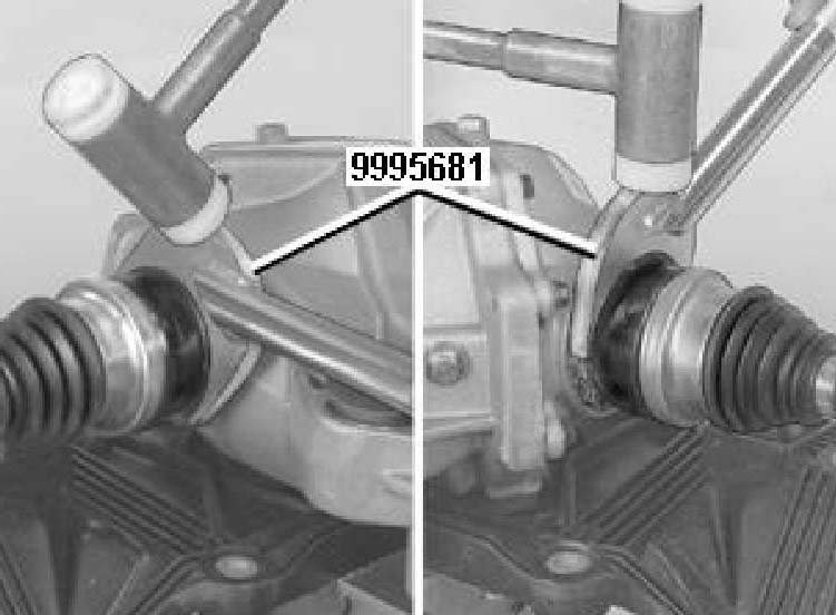 Use tool 999 5681. See illustration for instructions on how to use the tool on the left and right-hand sides.