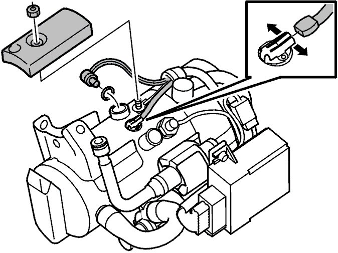 Remove the fan shroud. See Fuel injection nozzle / fan motor / pressure equalizer, replacing Fuel Injection Nozzle / Fan Motor / Pressure Equalizer, Replacing