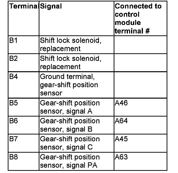 Control module terminals #A1-#A60 correspond to terminals #A1-#A60 on the breakout box, terminals #A61-#A70 correspond to terminals #B1-#B10 on the breakout box