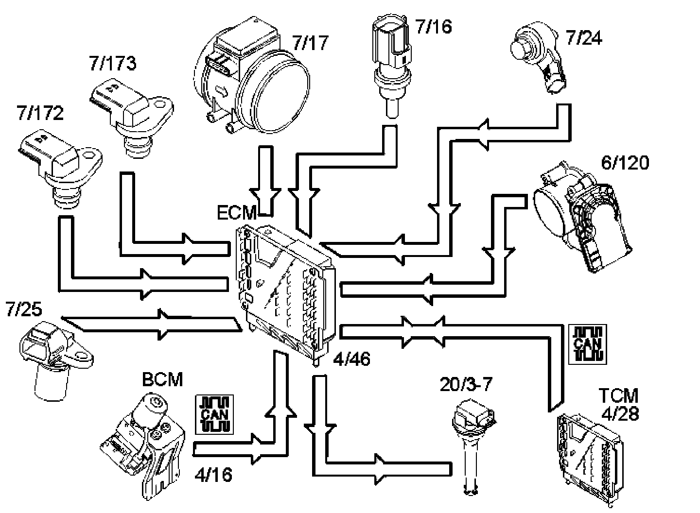 - throttle position (TP) sensor on the electronic throttle unit (6/120)