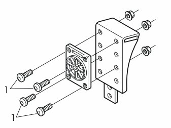 - Install the adapter plate (1) on the bracket (2.) Use the screws (3) and the nuts (4).
