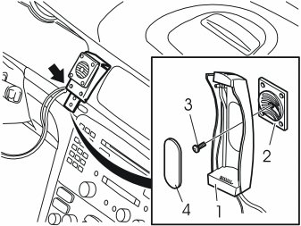 - Slacken off the screw (2) slightly so that the intermediate section (3) of the car-phone holder can be turned in its mounting (4)