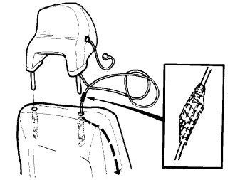- Carefully thread the upholstery over the new head restraint with the microphone.