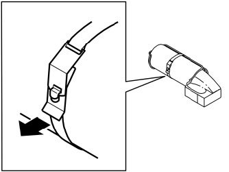 - Position the fire extinguisher in the holder. Hook the tensioner in the eyelet, tighten the strap and lock