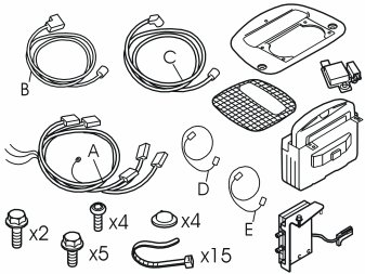 - the cable with the ten pin connectors to the display screen (B in the kit illustration)