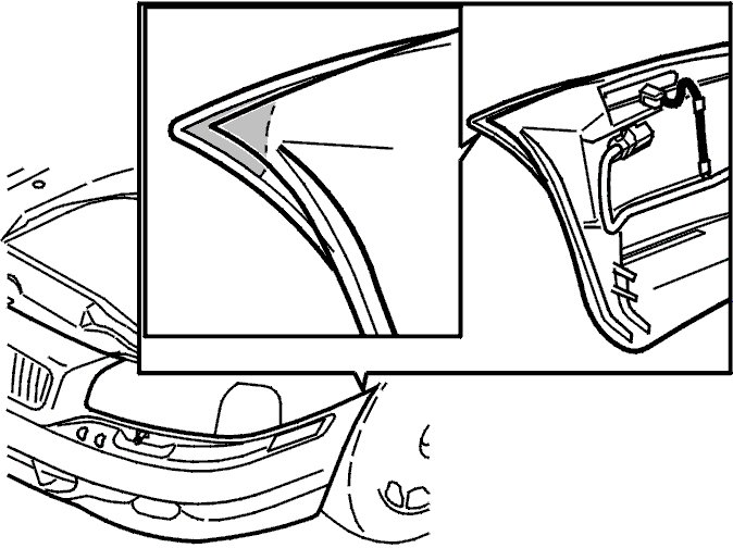 Clean the shaded area in the illustration thoroughly. Use white spirit. (The illustrations display the inside of the bumper).