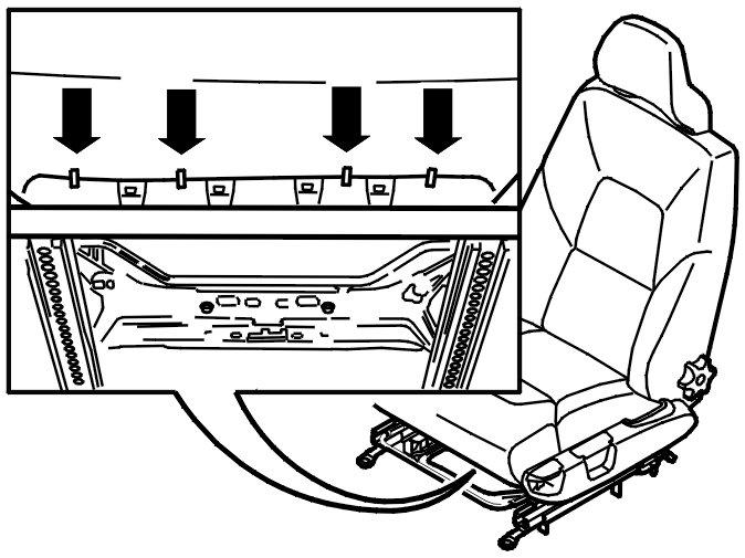 - the half moon clips, 4 per side, from the front edge of the seat cushion.