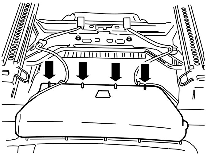 Install the front seat. See Lifting the front seats in and out Lifting the Front Seats In and Out.