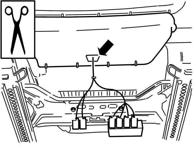 Thread each connector individually through the hole in the seat cushion upholstery.
