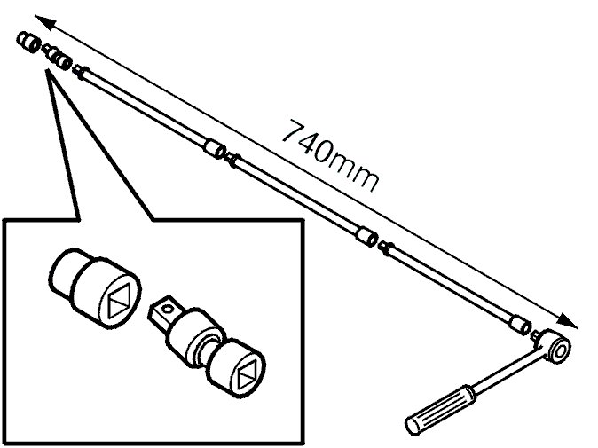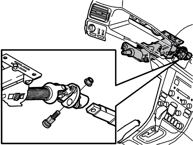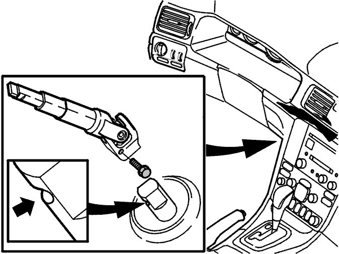 Remove the screw on the lower steering shaft on the driver's side wheel housing. Use the tool depicted in the illustration.