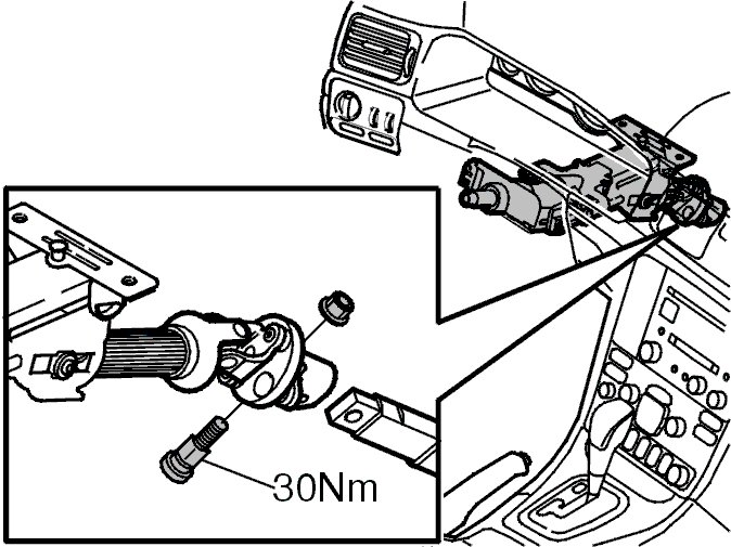 Tighten the lower screw on the lower steering shaft in the engine compartment. Tighten to 25 Nm.