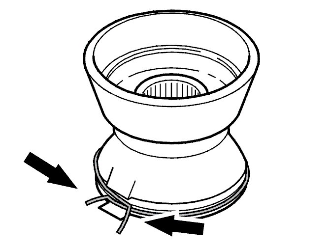 Install the snap ring around the boot. Bend back the outer section of the boot
