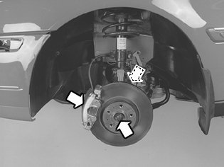 - the brake caliper from the wheel spindle. Hang the brake caliper in the spring with a hook.