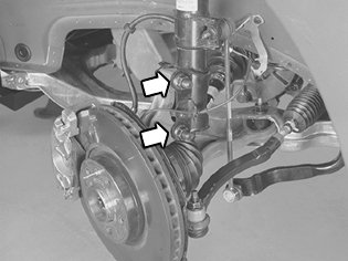 Remove the screws and nuts between the spring strut and the wheel spindle.