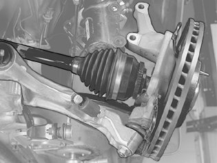 Note! Pull the constant velocity joint, not the drive shaft joints, when removing the drive shaft. There is no axial pinion.