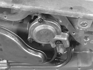 Pull down the cover with the servo cylinder. Check the position of the small strainer on the cylinder.