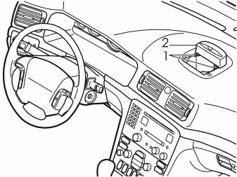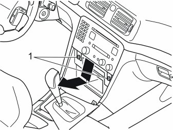 - Carefully remove the loudspeaker grille (1) on the dashboard. Use a weatherstrip tool or similar.