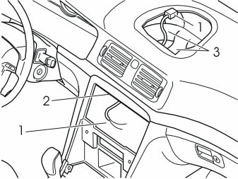 - Route the cable between the air ducts (3) to the hole for the loudspeaker in the dashboard.