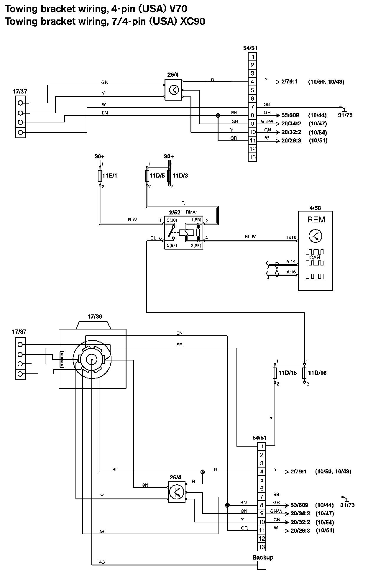 Towing Bracket Wiring, 4-pin, 7/4-pin: