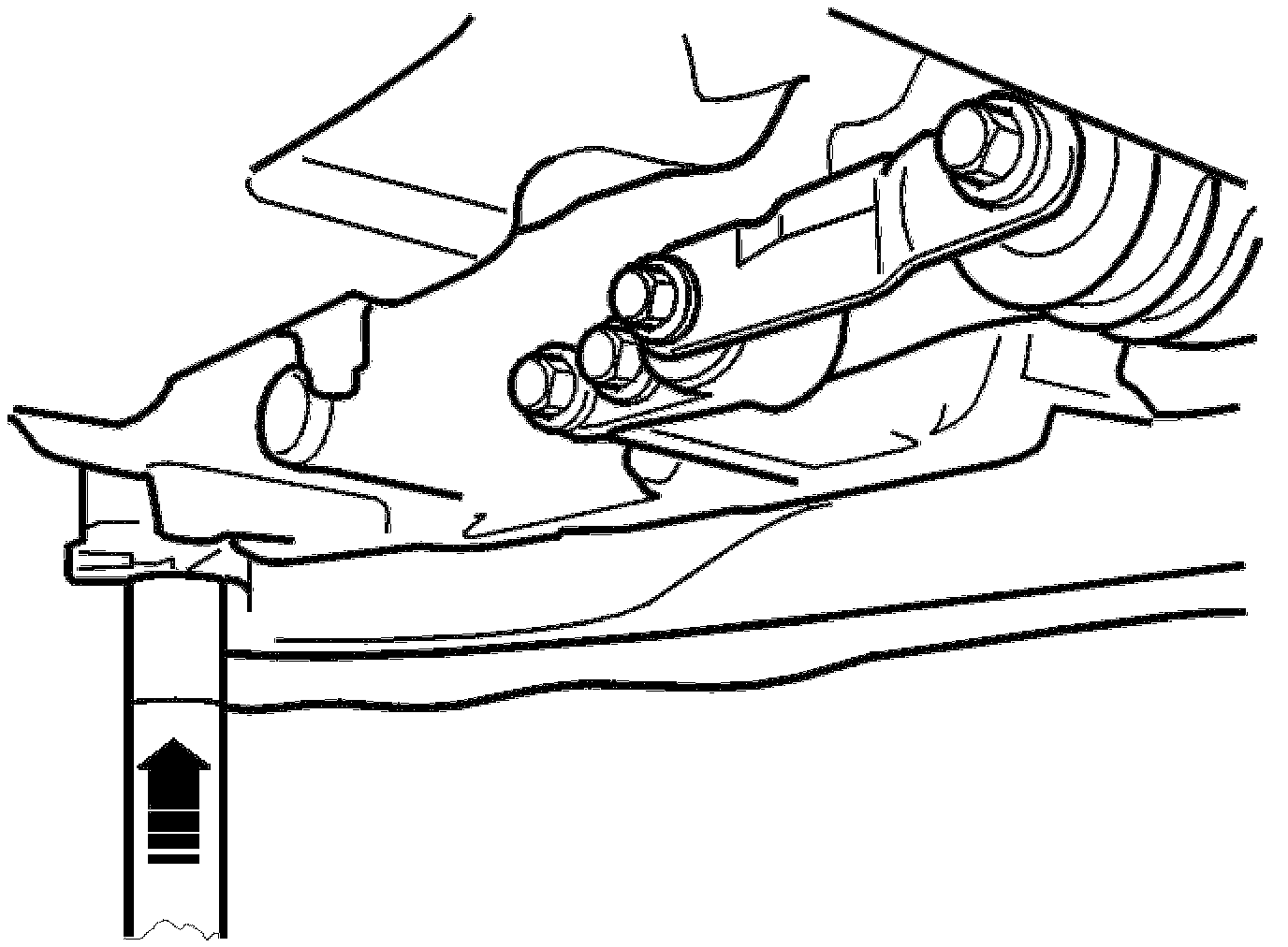 - Remove the screw and nut at the lower torque rod mounting to the bracket on the transmission