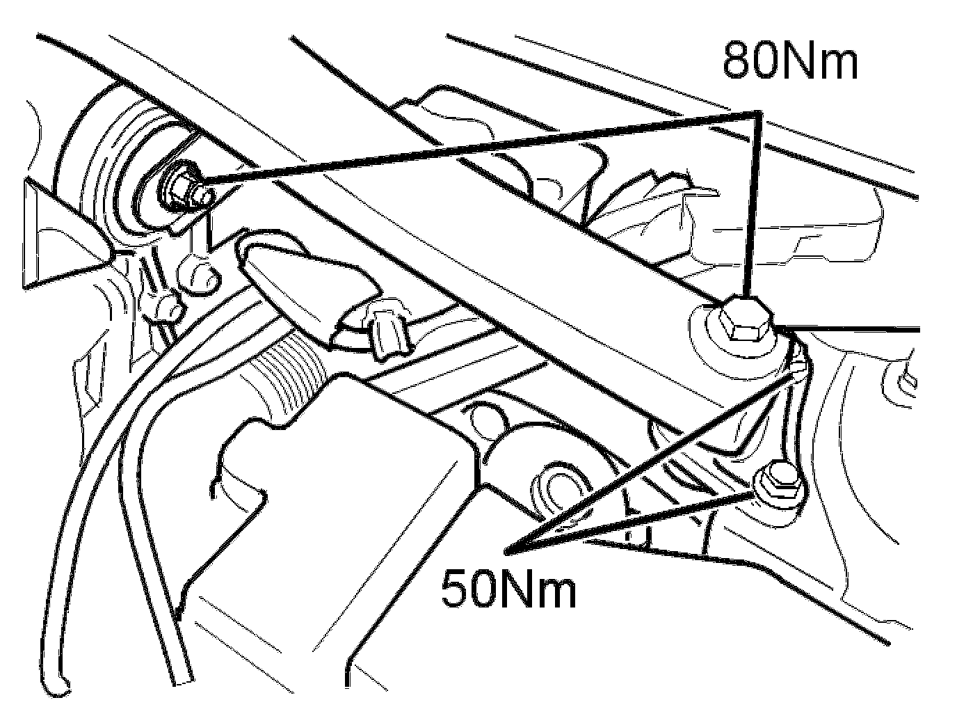 - the screw for the torque rod mounting at the torque bracket on the engine. Tighten to 80 Nm.