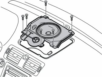 - Install the loudspeaker in the hole in the dashboard. Tighten using the six screws