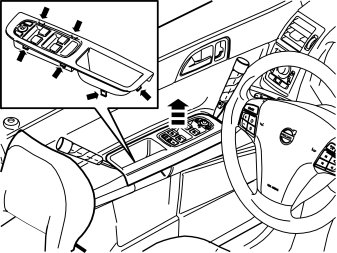 - Remove the door handle panel and the door module. Carefully pry off the panel using a weatherstrip tool. Pull the panel up. The panel is secured by six catches in the door panel.