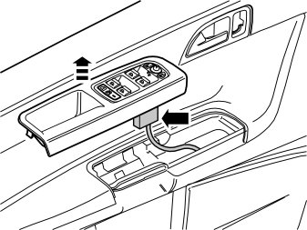 - Connect the connector to the door module. Press the panel with the door module into place in the door panel. Ensure that all the mounting hooks have secured