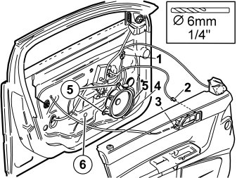 - Applies to cars with premium loudspeakers: Remove the blind cover plug over the existing rivet hole (6). Rivet the fourth hole for the premium loudspeaker in this
