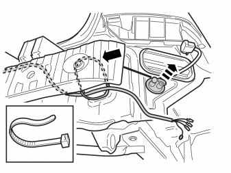 - Insert the cable harness into the cargo compartment through the hole in the car body. Press the rubber grommet into place.