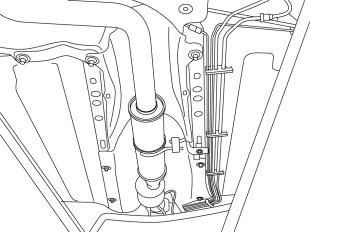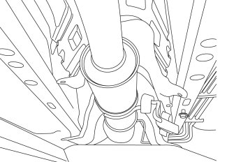 Detach the front heat deflector plate from the studs and pull it down towards the exhaust system, sliding it forward slightly.