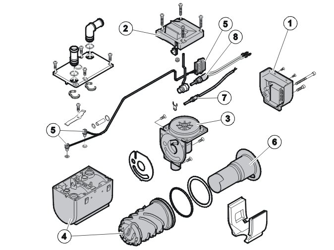 1. Engine coolant heater with radiator hose connections, exhaust system and external water pump (D5WS and B5WS)
