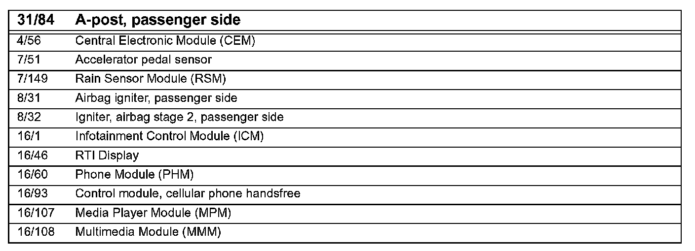 31/84 Ground Connection, A-Pillar Passenger Side: