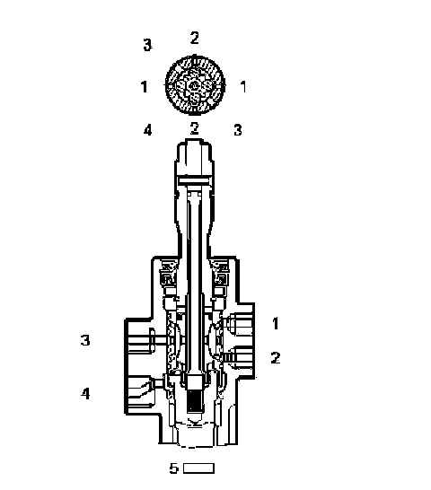 The valve spool has three radial grooves, a small one that is fed by the power steering pump and an upper and a lower groove that are connected with the working cylinders via the outer pipe.
