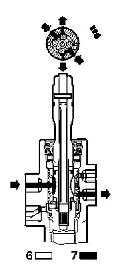 The function when turning right is, in principle, the same as to the left. The only difference is that the steering gear input shaft stops the flow of high pressure oil through the return and down through the groove on the inside of the valve and out through the low pressure pipe to the left-hand side of the piston.